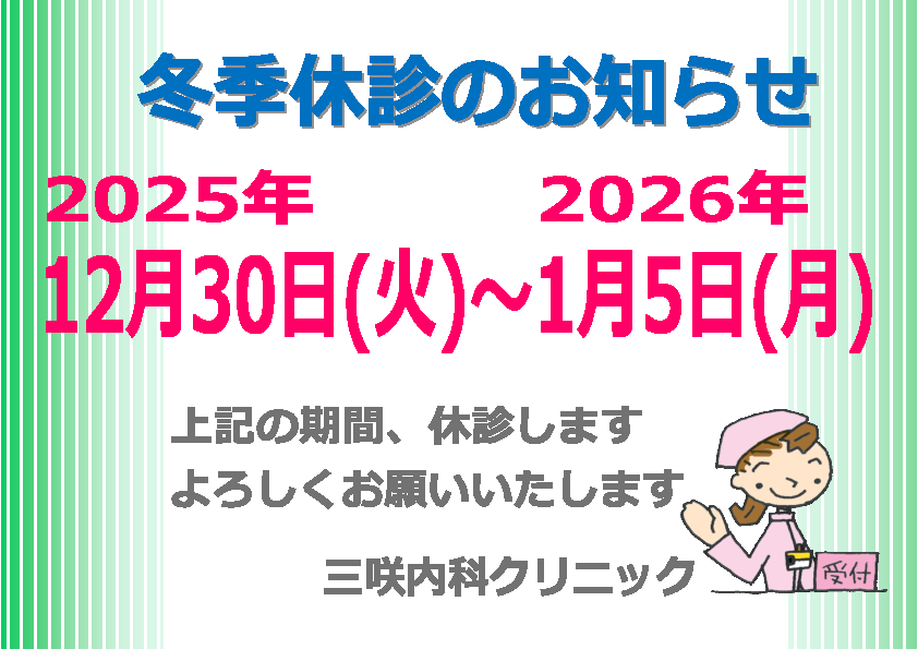 平素より三咲内科クリニックをご利用いただき、誠にありがとうございます。